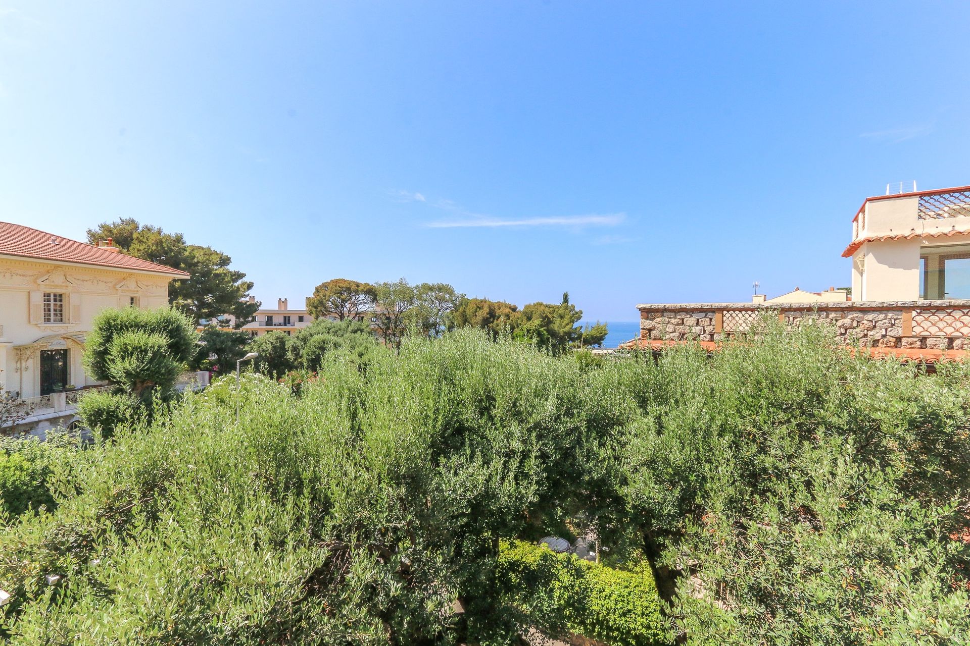 Nestled in the centre of Cap d'Ail, this elegant 148 m² apartment occupies the entire upper floor of a former villa, now comprising only two residences offering both privacy and tranquillity in a unique setting. The facade of the building has been recently restored.
