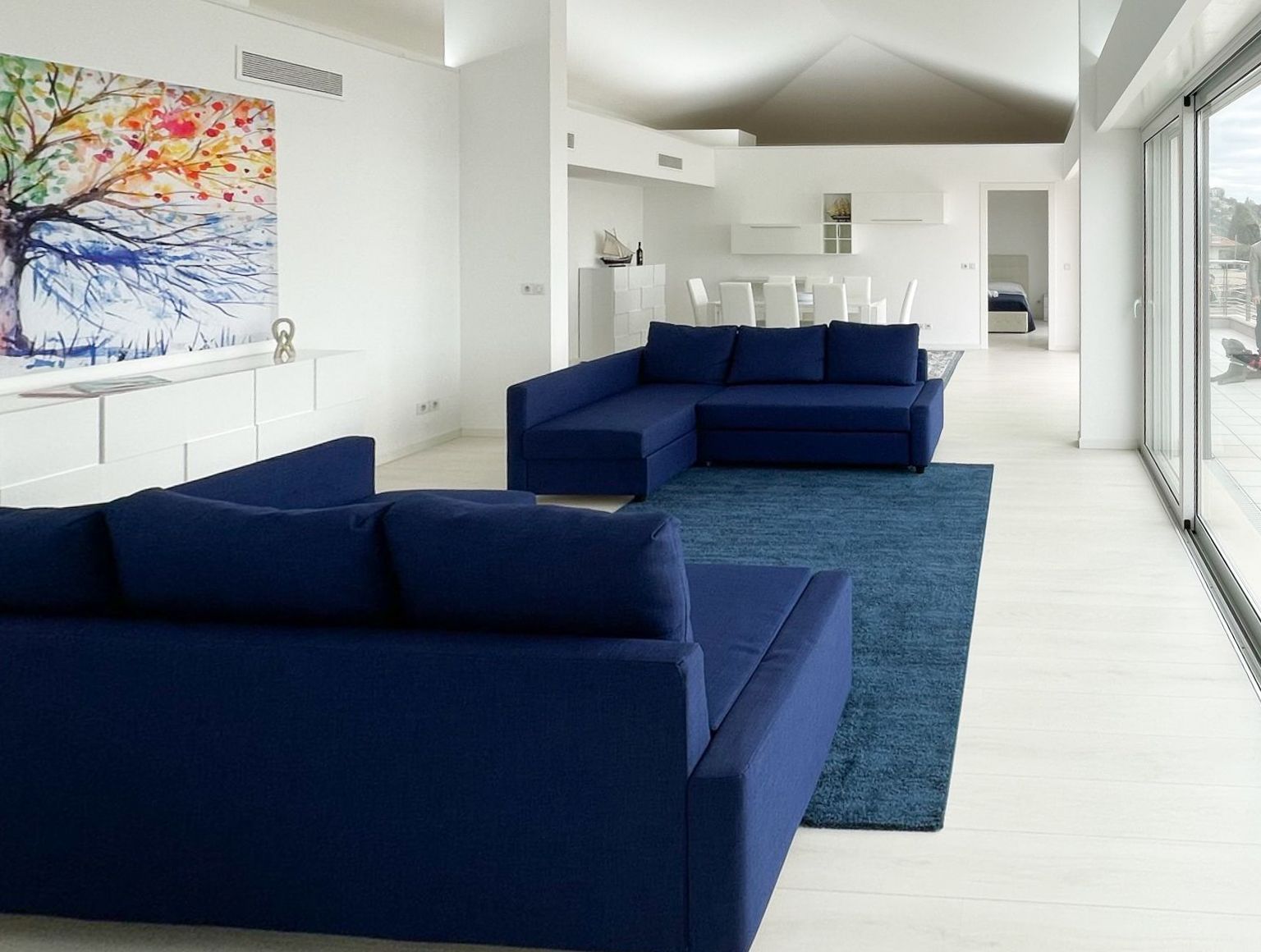Penthouse i nyere bolig med pragtfuld udsigt over havnen og havet. Tæt på strandene og den italienske grænse. Penthouse - nr. 01 - 4 værelser med terrasse og havudsigt. Ekstra parkeringsplads. Entré. Gæstetoilet. Stue med udgang til en stor terrasse. Separat køkken. Soveværelse med påklædningsværelse og eget badeværelse med badekar. Soveværelse 2 med eget brusebad. Soveværelse 3 med eget badeværelse og påklædningsværelse. Pool. Mulighed for at købe en enkelt-, dobbelt- eller tredobbelt garage derudover.