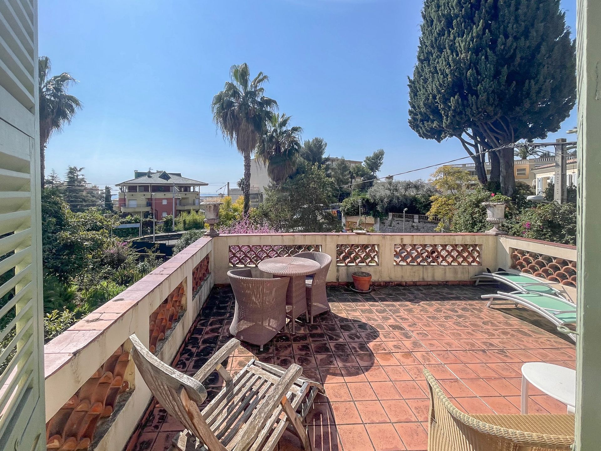 Beliggende i det meget eftertragtede boligområde Menton Garavan, kun 100 meter fra strandpromenaden og tæt på alle faciliteter, tilbyder denne charmerende villa fra århundredeskiftet karakter, plads og et fremragende potentiale. Ejendommen er fordelt på tre etager og byder på en lys stue med marmorpejs, der åbner ud til en sydvendt terrasse, en spisestue, et rummeligt køkken med morgenmadsområde og to soveværelser ovenpå med adgang til en stor terrasse. I haveplan tilføjer en uafhængig lejlighed fleksibilitet til gæster eller udlejning, med mulighed for at forbinde den med hovedhuset. Ejendommen har bevaret smukke originale træk, herunder højt til loftet, buede vinduer og franske døre. Udendørs skaber anlagte terrasser og haver med frugttræer en behagelig middelhavsomgivelse. En garage, et værksted og ekstra opbevaring fuldender ejendommen. Der er også potentiale til at skabe en swimmingpool, afhængigt af byggetilladelse. En sjælden mulighed for at erhverve en karakterfuld villa på en af Mentons mest eftertragtede steder.