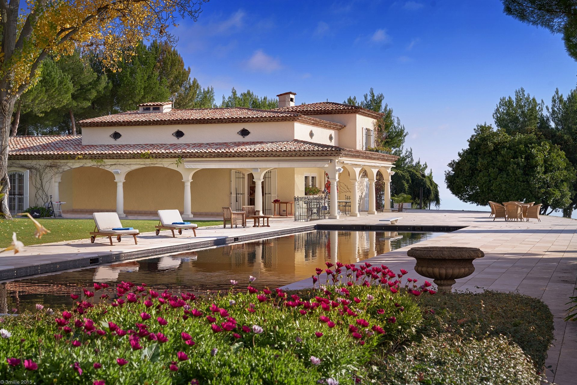 Prestigeträchtiges Anwesen zur Miete in Eze. Landgut 20 Minuten von Monaco entfernt in einer ruhigen und grünen Umgebung, einem sicheren, 5 Hektar großen Landschaftspark mit Panoramablick auf das Meer. Das Anwesen besteht aus einer Hauptvilla, einem Gästeapartment, einem separaten Gästehaus und Personalunterkünften. Die Hauptvilla erreicht man über eine lange Auffahrt, die zum Parkplatz und zur Garage für fünf Autos führt. Sie besteht aus einem Wohnzimmer mit Kamin, einem Esszimmer, einer voll ausgestatteten Küche und einem Büro mit Kamin. Alle Zimmer haben Zugang zur Terrasse und zum Garten. Das Hauptschlafzimmer mit Ankleidezimmer und Badezimmer, zwei Schlafzimmer mit zwei Badezimmern. Im Obergeschoss zwei Schlafzimmer, ein Büro, ein Spielzimmer.