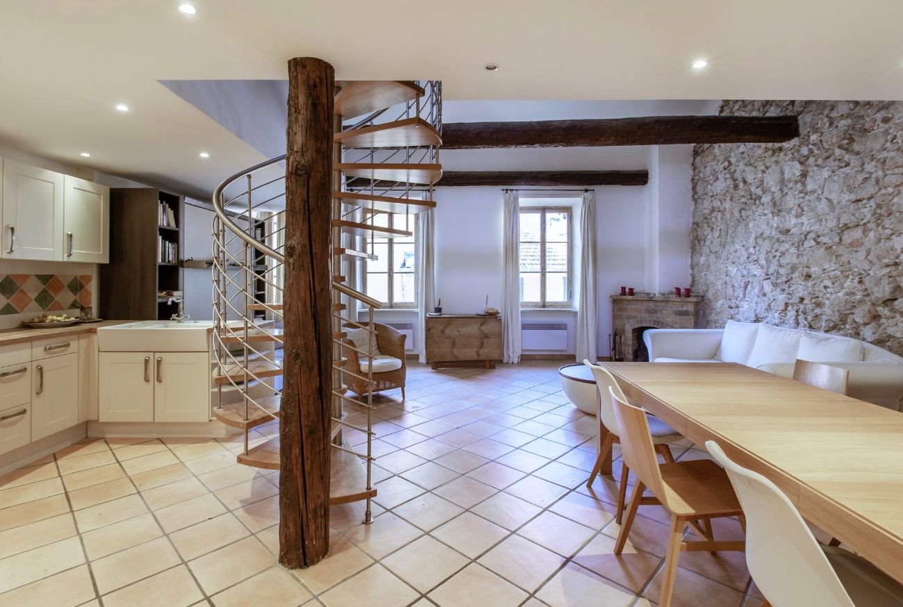 Pieno di carattere, questo splendido appartamento in stile loft di 100 m² si trova all'ultimo piano di un tipico edificio del centro storico. È dotato di un'ampia zona soggiorno e pranzo con una cucina a pianta aperta completamente attrezzata. Al piano superiore, sul mezzanino, troverete un'accogliente zona salotto e una grande camera da letto con il suo bagno con doccia.