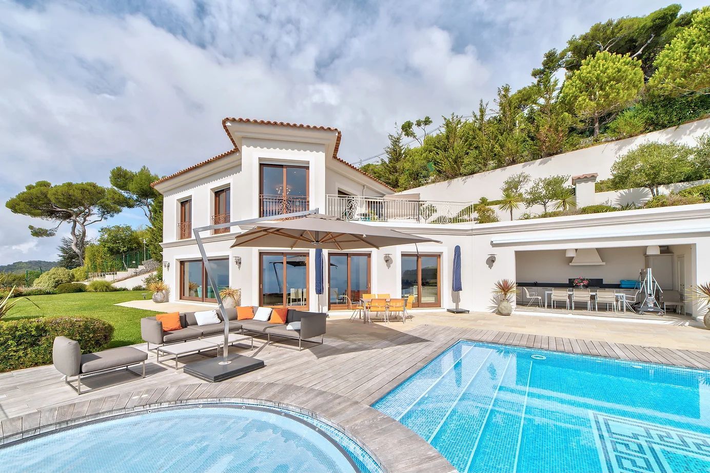 La proprietà di 450 mq di superficie abitabile su due livelli beneficia di un bellissimo giardino con piscina di 25 m con jacuzzi; ed è composta al piano terra da un soggiorno, cucina che si apre sulla terrazza con cucina estiva, tre camere da letto e bagni con doccia, palestra, sala per il personale. Al piano d'ingresso: una camera da letto padronale con terrazza privata, due camere da letto con bagni, sala giochi. Parcheggio per diverse auto, ascensore.