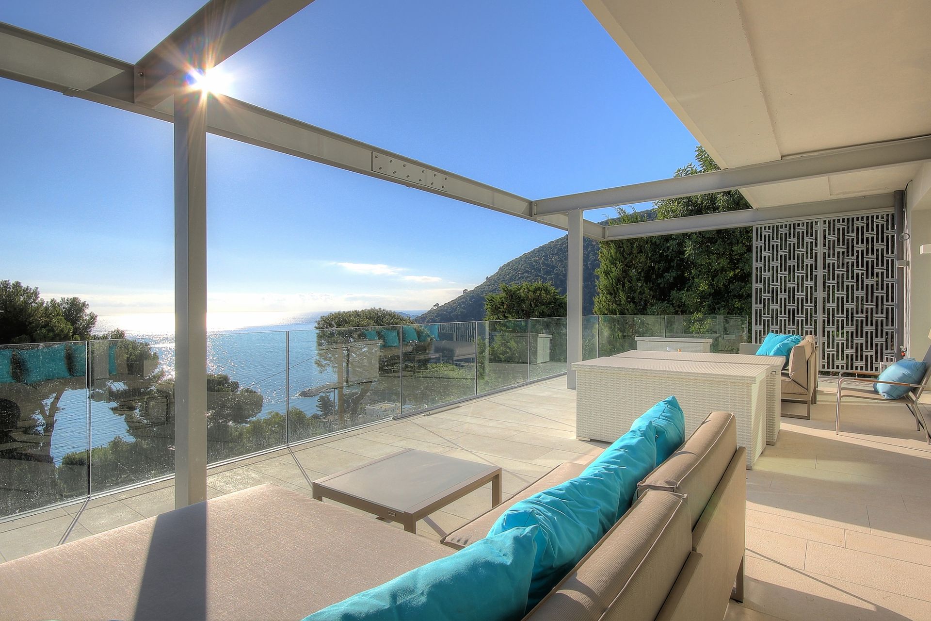 Affitto villa moderna Eze bord de Mer. Eccezionale villa moderna con viste fantastiche sul Mar Mediterraneo e sul Cap Ferrat, ma a pochi passi dalla spiaggia di Eze.