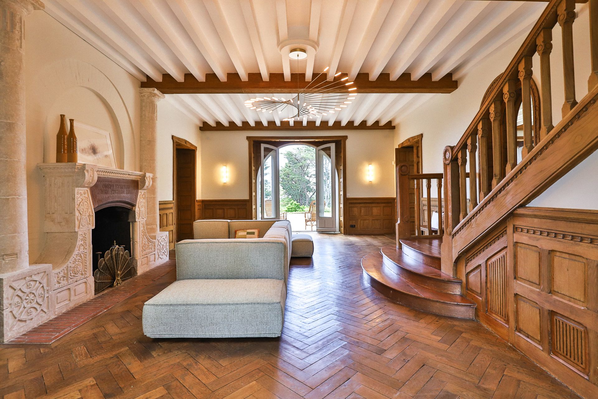 Ideally located on the Basque Coast between Bidart and Guéthary, at the border of these two highly sought-after Basque villages, this villa is a remarkable 600 m² property nestled in nearly 3 hectares of beautifully wooded parkland. With views over the ocean and the surrounding mountains, it provides the perfect setting for family holidays or corporate retreats and seminars. The villa offers outstanding high-end features and generous living spaces: high ceilings, a large fireplace, designer furniture, and refined interiors where elegance and simplicity blend harmoniously to create a warm and welcoming atmosphere.