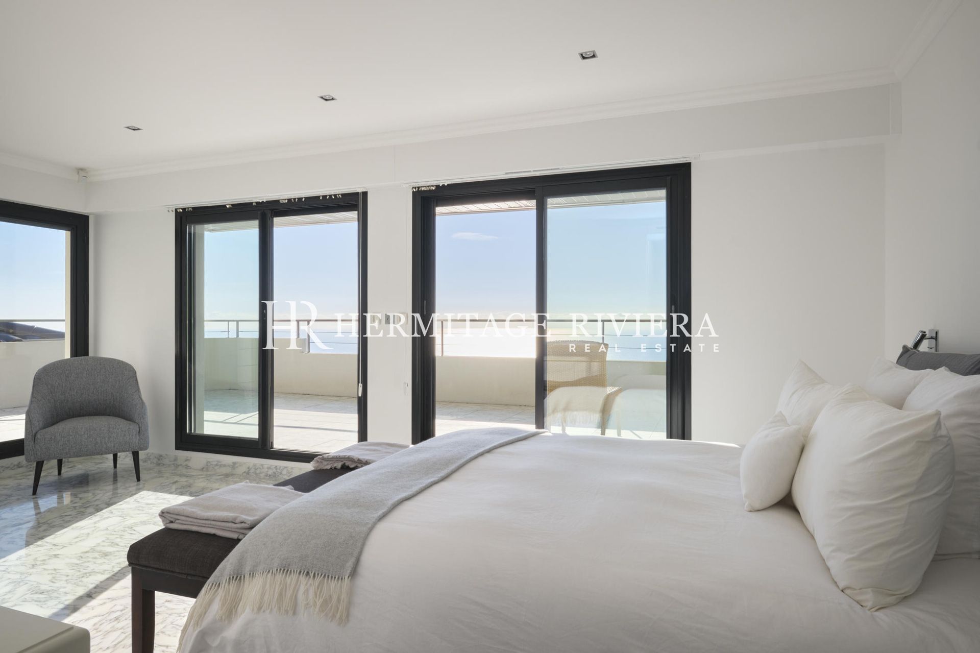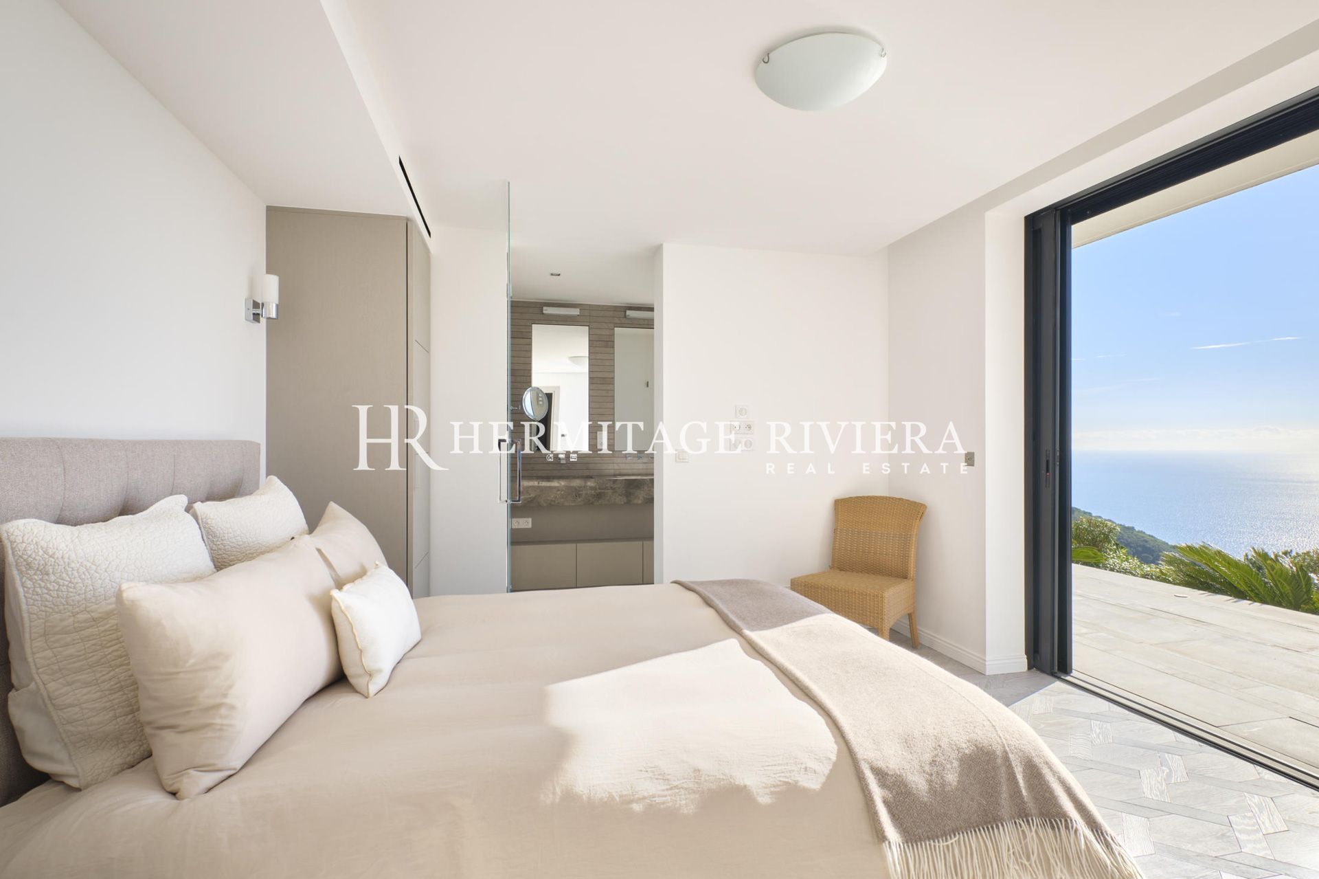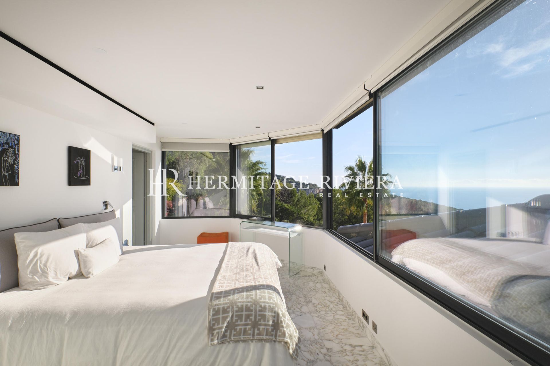 这栋现代别墅位于一个 24/7 全天候守卫的安全区域内,距离摩纳哥公国和蔚蓝海岸最好的海滩仅 5 分钟车程。您将享受到这里宁静而完全安全的地理位置。别墅的居住面积为 350 平方米,状况完美,每间客房均可欣赏美丽的海景,拥有 1200 平方米的园景花园和 10 x 4 米的温水游泳池。这栋房子分为 4 层:入口处是一间卧室,配有相连的淋浴间和更衣室;+1 层是第二间卧室,配有相连的浴室和更衣室。